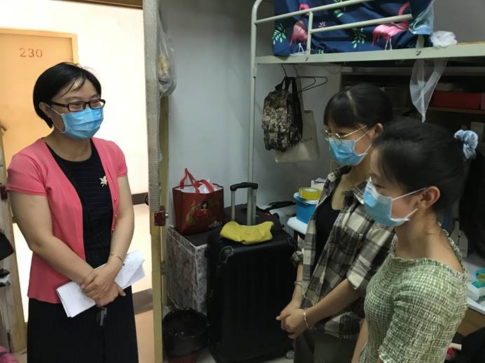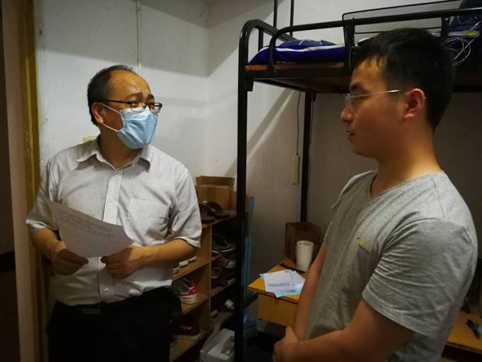 你展云帆济沧海,我挂婵娟待子还。为欢迎各位毕业生返校,荷花池前树立起以“心系家国,不负韶华”为主题的毕业墙,教二楼前“南望山下,荷花池畔,朝思暮想,盼君归来”的横幅格外醒目,6月24日,永利官网第一批返校毕业生顺利“回家”。当天下午,学院党委书记瞿祥华,党委副书记于晓舟,副院长李波、副院长文国军、副院长罗杰和毕业研究生导师、毕业本科年级班主任、全体辅导员分组走访返校毕业生宿舍,了解同学们的思想动态,为各位毕业生送去学院的关心和祝福。