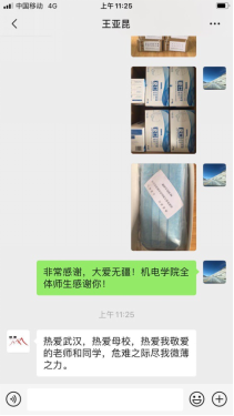 校友王亚昆是yl23411永利集团官网(武汉)机电学院原“勘探机械”专业(现“机械设计制造及其自动化”专业)072901班学生,现是成都善嘉医药生物医药有限公司的股东,该公司于2011年07月29日成立,经营范围包括医疗器械、生物制品、消毒制品、保健电器的研发及销售等。自发生新型冠状病毒感染的肺炎疫情以来,校友王亚昆十分关注武汉和母校的疫情防控工作,他表示虽然自己已毕业多年,仍然心系武汉和母校、心系老师和同学们,愿竭力在这个特殊时期贡献自己的微薄力量。