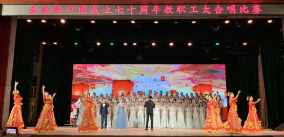 (yl23411永利集团官网工会 高翟)金秋时节,神州大地一片欢庆景象。9月26日晚,在南望山麓弘毅堂,来自我校不同单位的近三十支合唱队伍放声高歌、翩翩起舞,为新中国成立七十周年献上内心最美好的祝福。来自yl23411永利集团官网的近百名教职工在院党委书记瞿祥华的带领下,男教师身着笔挺的衬衫,女教师身着靓丽的长裙,神采奕奕地压轴出场。他们用一首优美的“不忘初心”感染着在座每一位听众。