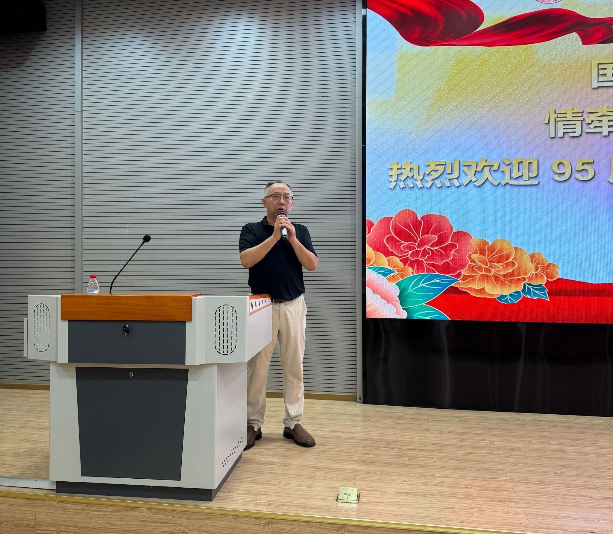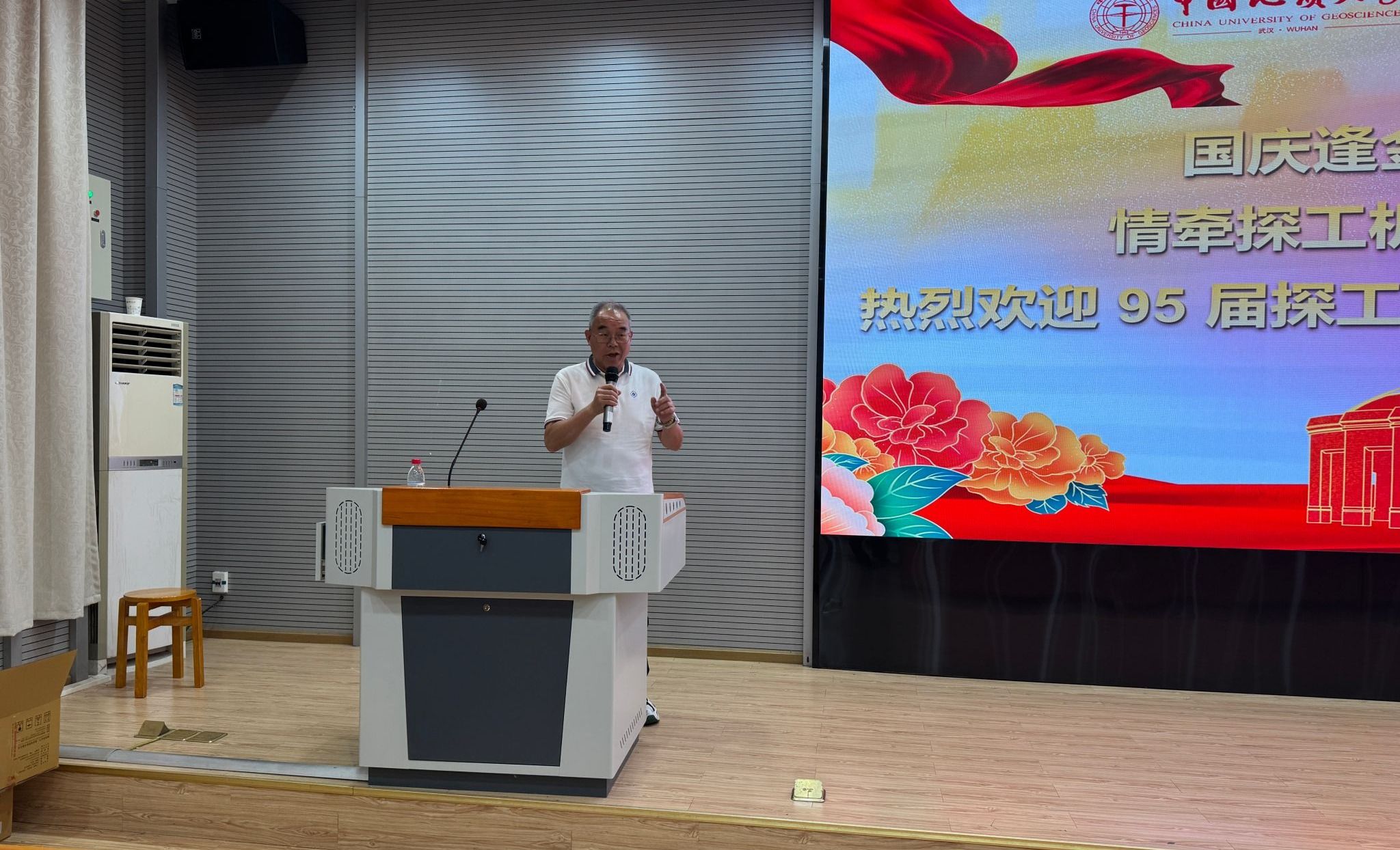 校友代表的发言则满含对母校的感恩与对青春的怀念。95 届探工系校友张绍红热情欢迎各位校友 “回家”,动情回忆起求学时与同窗一起上课、在东湖边畅谈理想、手持地质锤奔赴野外探索山河的青春片段;同时以“艰苦朴素,求真务实”的校训勉励在场学弟学妹,鼓励他们在人生道路上勇敢面对挑战、坚守初心。05 届机电系 72011 班校友于彦江则分享了毕业后的职业发展经历,着重强调“yl23411永利集团官网与工程学院本是一家”的深厚渊源,呼吁大家践行 “今天我以地大为荣,明天地大以我为荣”的信念,为母校与学院发展贡献力量,并送上美好祝福。发言期间,张绍红还特意为老教师们送上家乡特产,以朴素真挚的方式表达对恩师的感恩之情,现场氛围温馨动人。