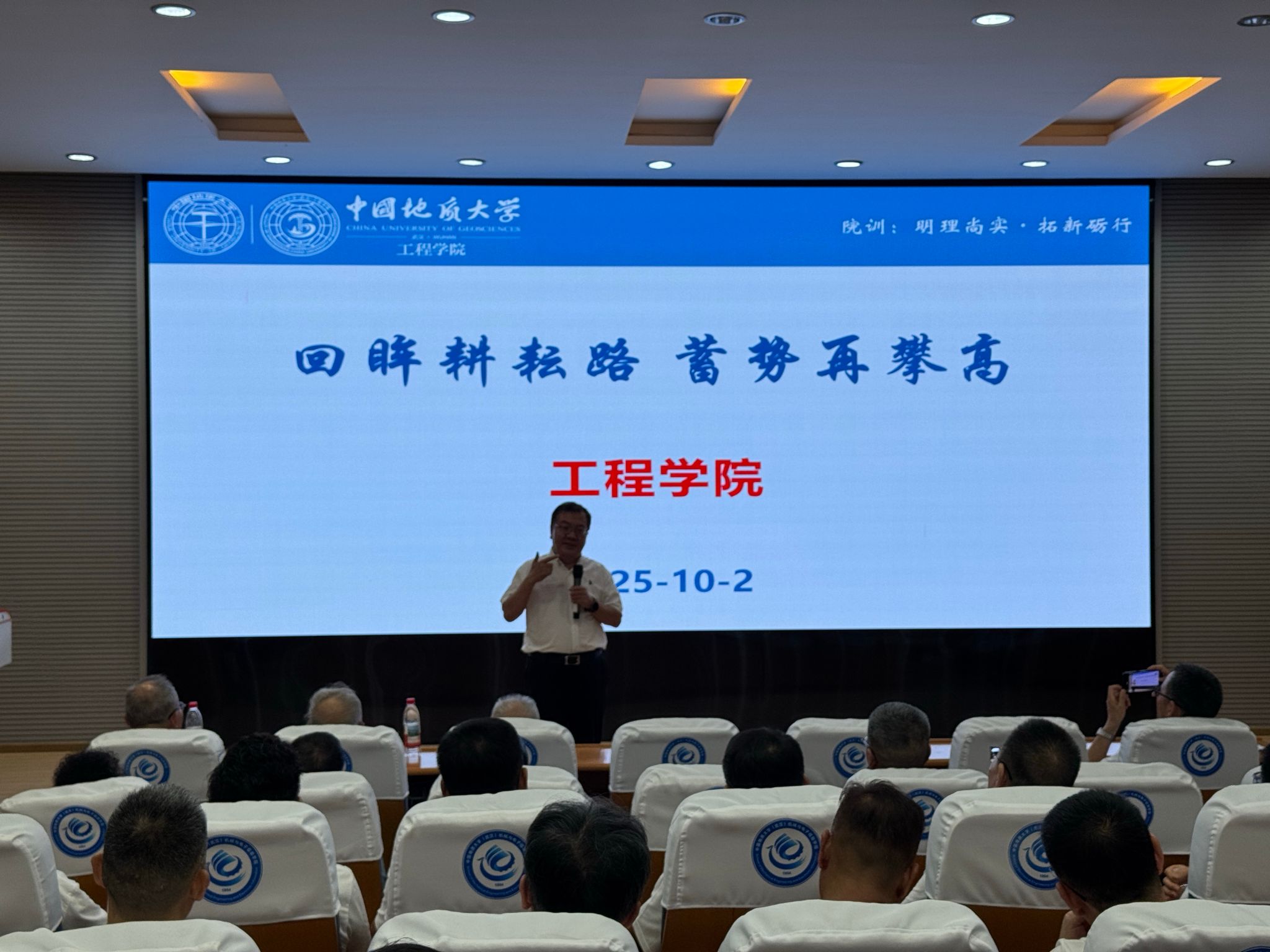 会上,工程学院院长王亮清率先详细介绍学院发展成果。他指出,探工系以机械专业为根基,在梳理历任四位院长的建设历程后,明确学院“立足地学特色、深耕工程领域”的目标定位。同时,他通过展示多类科研平台实景,全面讲解学院从本科到博士后的完整学科体系与师资队伍建设成效;结合条形图数据,直观呈现 “本科生占比高、人才培养基数大”的现状,并重点阐述学院创新构建的 “具备系统演化观、人地协调观、工程伦理观” 新工科人才培养模式。此外,王亮清院长还从党建双创、人才培养、科学研究等维度,总结 2024 年工作亮点,特别提及yl23411永利集团官网宁伏龙院长标志性成果“梦想号”获习近平总书记表彰的重要荣誉,充分彰显学院在科研与育人领域的卓越实力。
