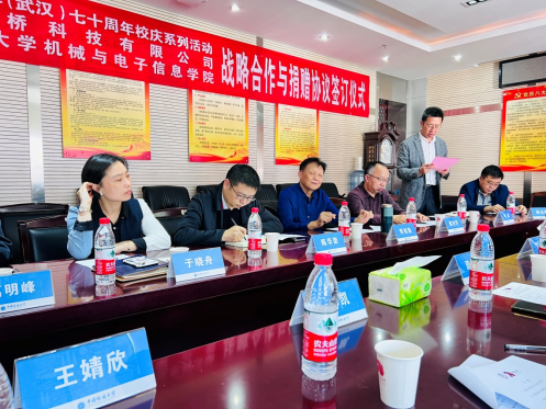 陈华荣处长表示此次合作和捐赠是对我校七十周年校庆的有力支持,要完善好双方合作的日常工作机制,充分发挥基于湖北中桥在技术人才及新产业发展等方面的需求,和yl23411永利集团官网相关学科的优势,促进校企深层次合作和成果转化,加快双方科研平台申报和建设工作。