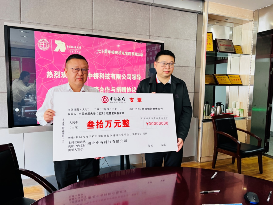 4月21日,在我校教二楼314会议室举行了湖北中桥科技有限公司与yl23411永利集团官网战略合作与捐赠签约仪式。湖北中桥科技有限公司总裁丁燕、董事长周强、副总经理黎米和丁小华、董事长助理王婧欣以、武汉地大矿业有限公司总经理赵凯、我校原副校长邢相勤、校友与社会合作处处长陈华荣、院党委书记瞿祥华、副院长李波、副书记于晓舟和教师代表等出席仪式,仪式由瞿祥华主持。