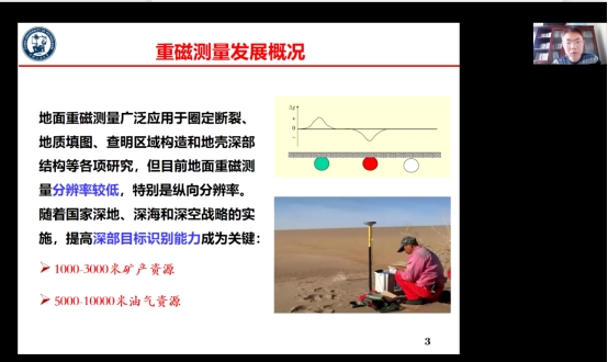 2022年4月8日,学院特邀中国石油大学(华东)徐凯军博士进行了“井中重磁数据测量及正反演研究”的学术报告,永利官网领导、专业教师及研究生共约55人参与聆听本次报告。报告由张晶教授主持。