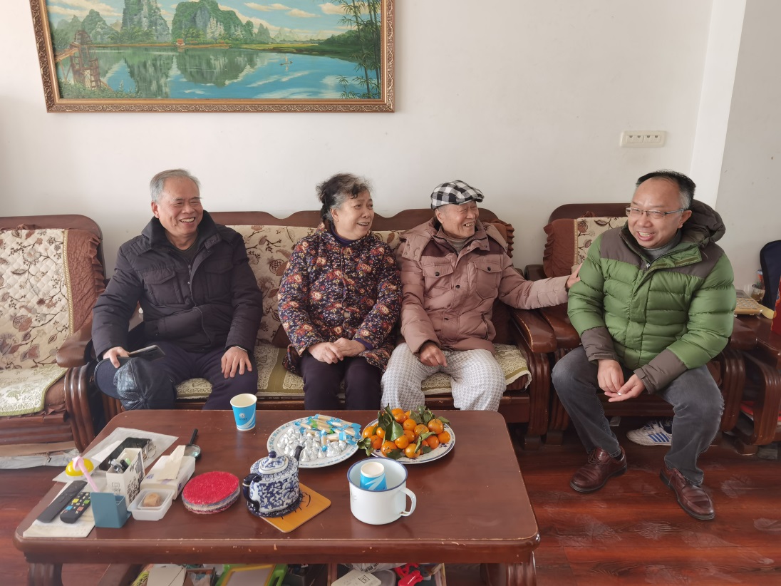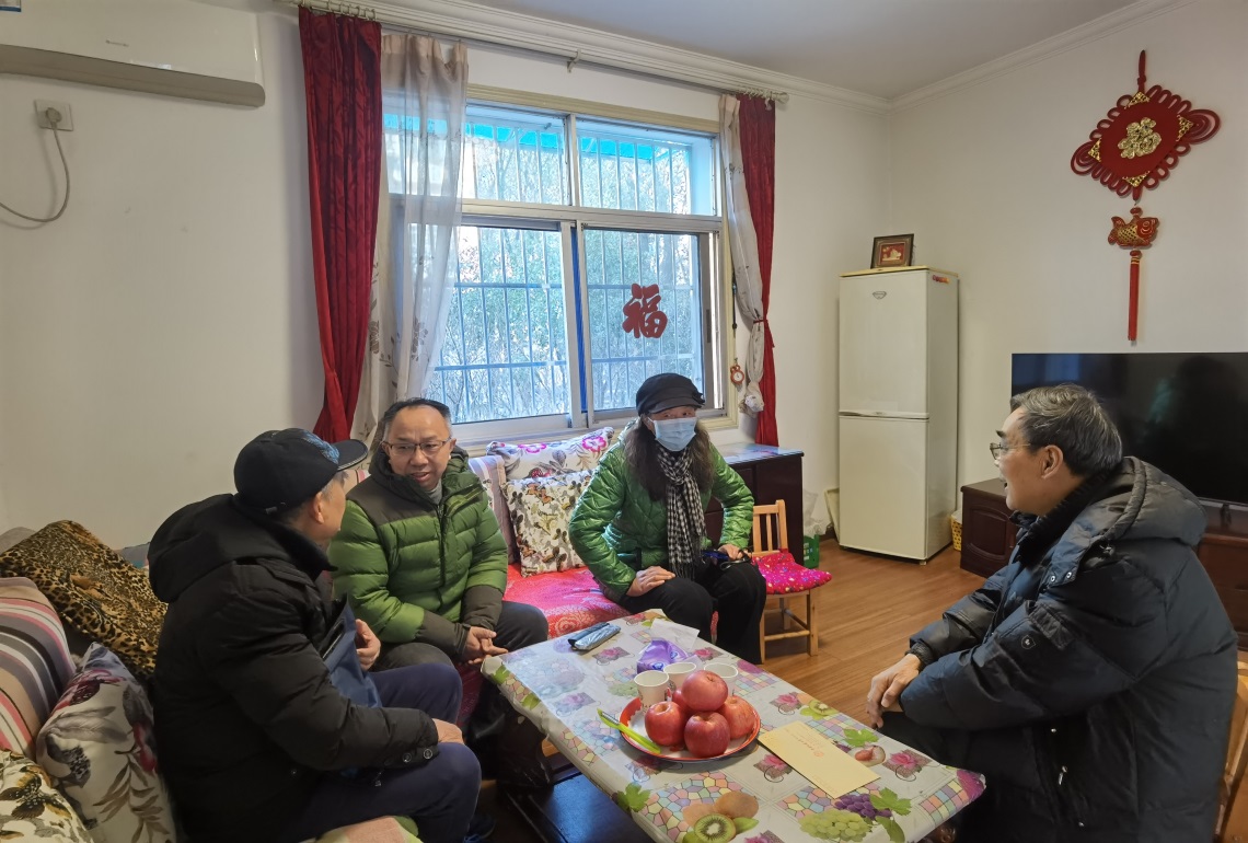 2022年1月13日下午,学院党委书记瞿祥华代表院党委和工会与地大退休十六支部孙立鹏、韦念龙、邓群等同志一起登门慰问部分住校离退休教职工。