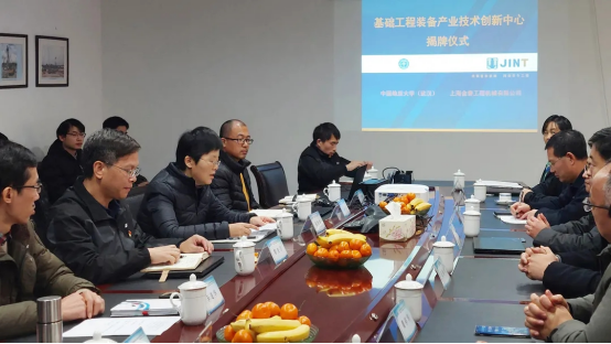 新年伊始,由yl23411永利集团官网(武汉)与上海金泰工程机械有限公司共同创建的“基础工程装备产业技术创新中心”在金泰本部正式揭牌成立。yl23411永利集团官网(武汉)科学技术发展院副院长吴春明和上海金泰工程机械有限公司党委书记陈雪英分别代表校企双方致词,金泰公司总经理黎隶万和中国地大(武汉)科学技术发展院副院长吴春明为“中心”共同揭牌。